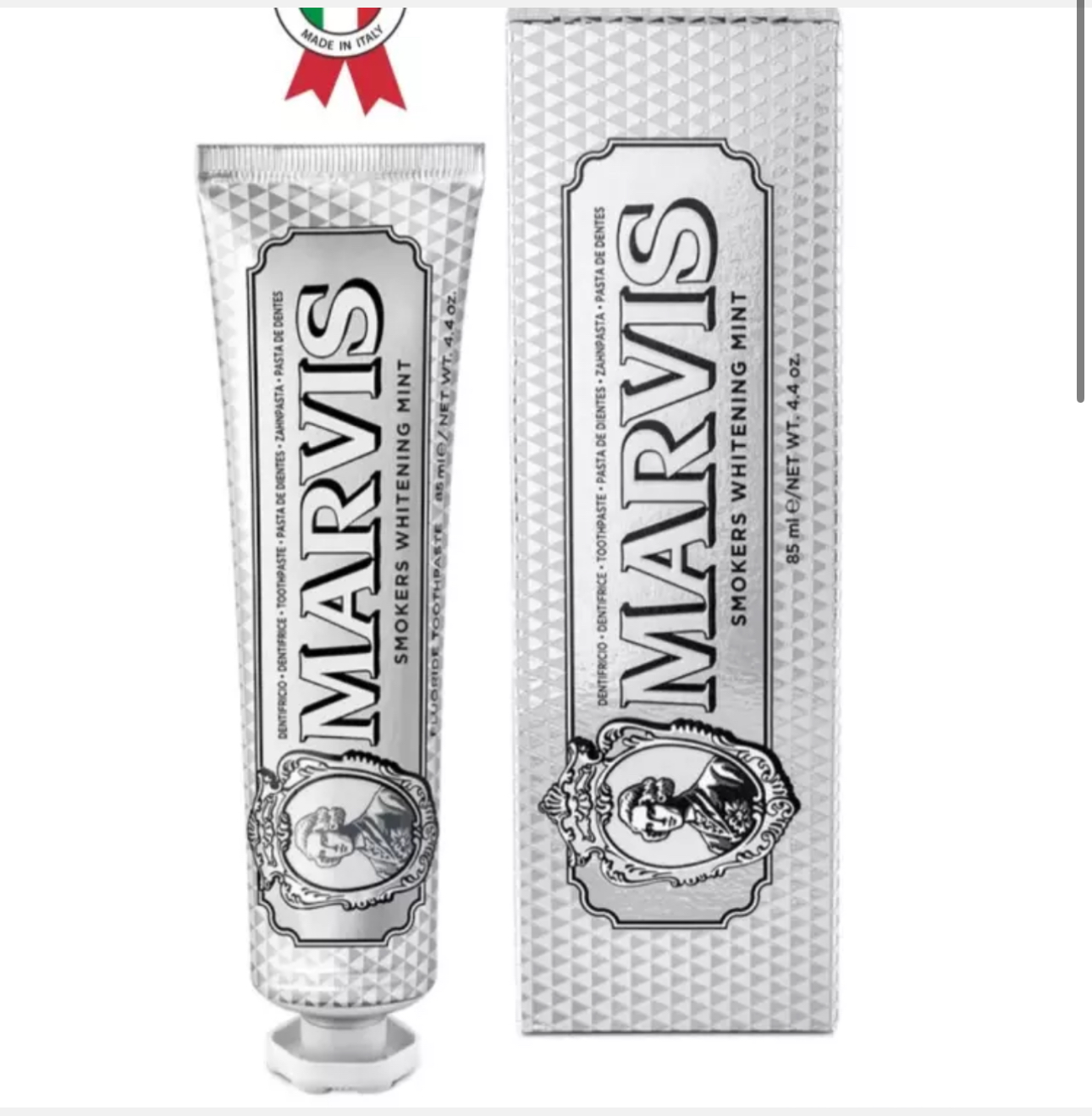 Marvis tish pastasi Italiyada ishlab chiqarilgan bo‘lib, premium sifatni ta'minlaydi. O‘zining klassik retsepti va noodatiy ta’mlari bilan ajralib turadi, ayniqsa chekuvchilar uchun maxsus ishlab chiqilgan.